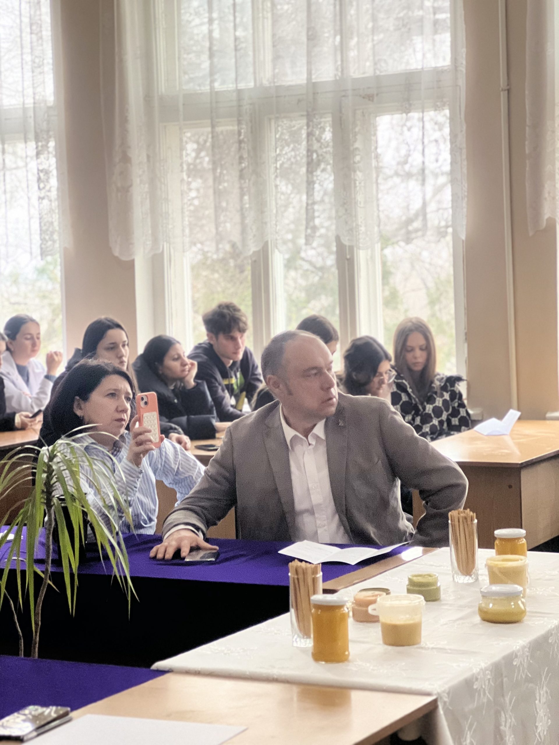 Доцент кафедры ветеринарной медицины Гроза Е. В. и студент Бовшик Е. В. представили ключевые различия натурального мёда и крем-мёда.
